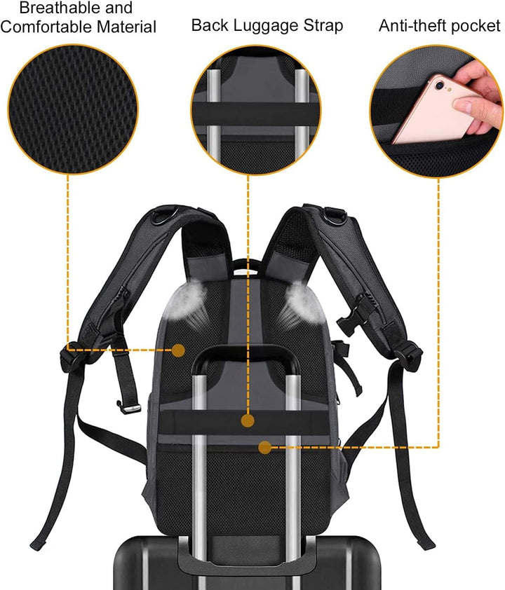 • Mit wasserdichtem PU-Leder Hardshell-Schutz auf der Vorderseite. Die Schaumstoff gepolsterte Schicht kann gute Puffer und Schutz für Ihre internen Sachen gegen Stösse und Tropfen bieten. Hohe elastische Rückenpolster können Ihre Schmerzen nach langer