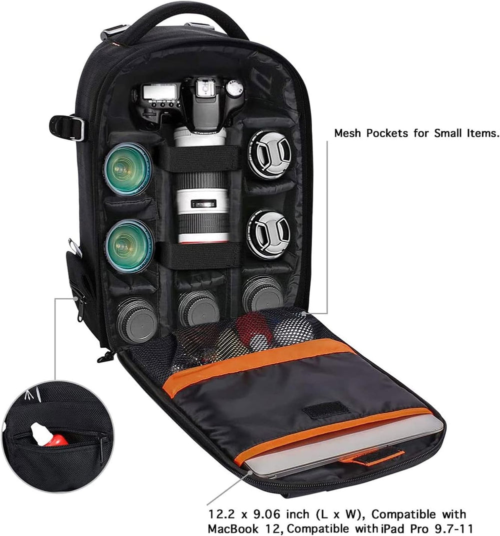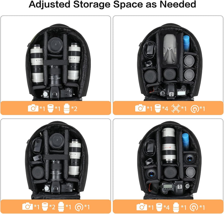• Diese multifunktionale Kameratasche wurde professionell für DSLR / SLR / spiegellose Kameras verschiedener Marken entwickelt. Kompatibel mit Nikon D5600, D5300, D3500, D3400, D3300, D3200; kompatibel mit Canon EOS Rebel T6, T6i, SL2 und anderen DSLRs in