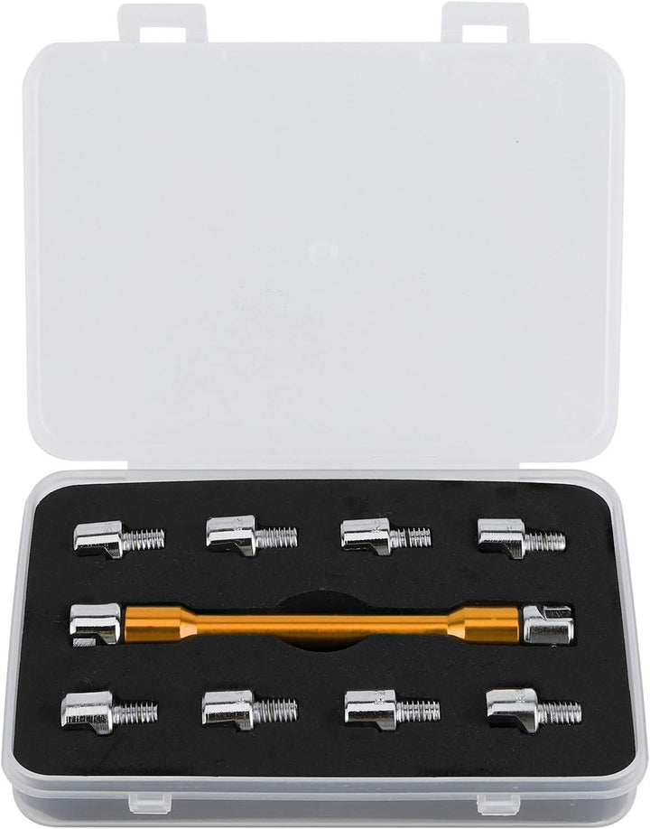 - 10 Grössen --- Dieser Motorrad Speichen schlüssel ist mit austauschbaren Saugköpfen ausgestattet, die für Speichenschnuller von 10 Grössen geeignet sind, sehr praktisch und praktisch