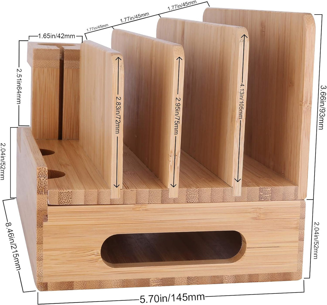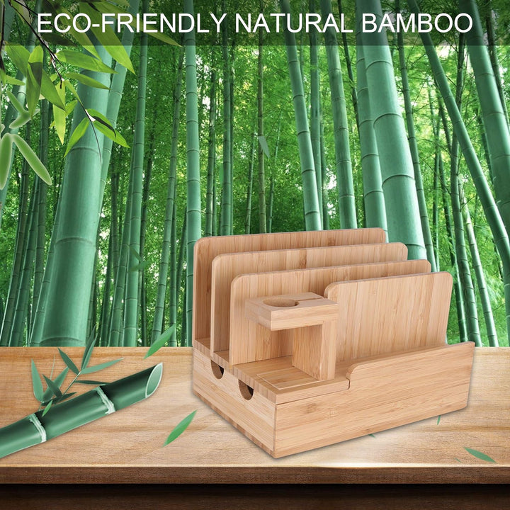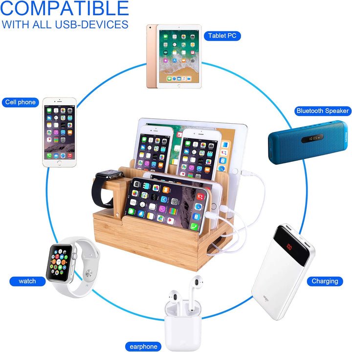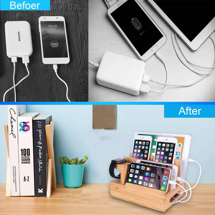 - 【Multi-Geräte-Organizer】: Umweltfreundliche natürliche Bambus-Ladestation bietet Platz für bis zu 6 Geräte (wie kompatibel mit iPhone, Apple Watch, Samsung Smartphones,Samsung Nexus, Tablets usw.) und hält gleichzeitig Ihre Geräte in Ordnung