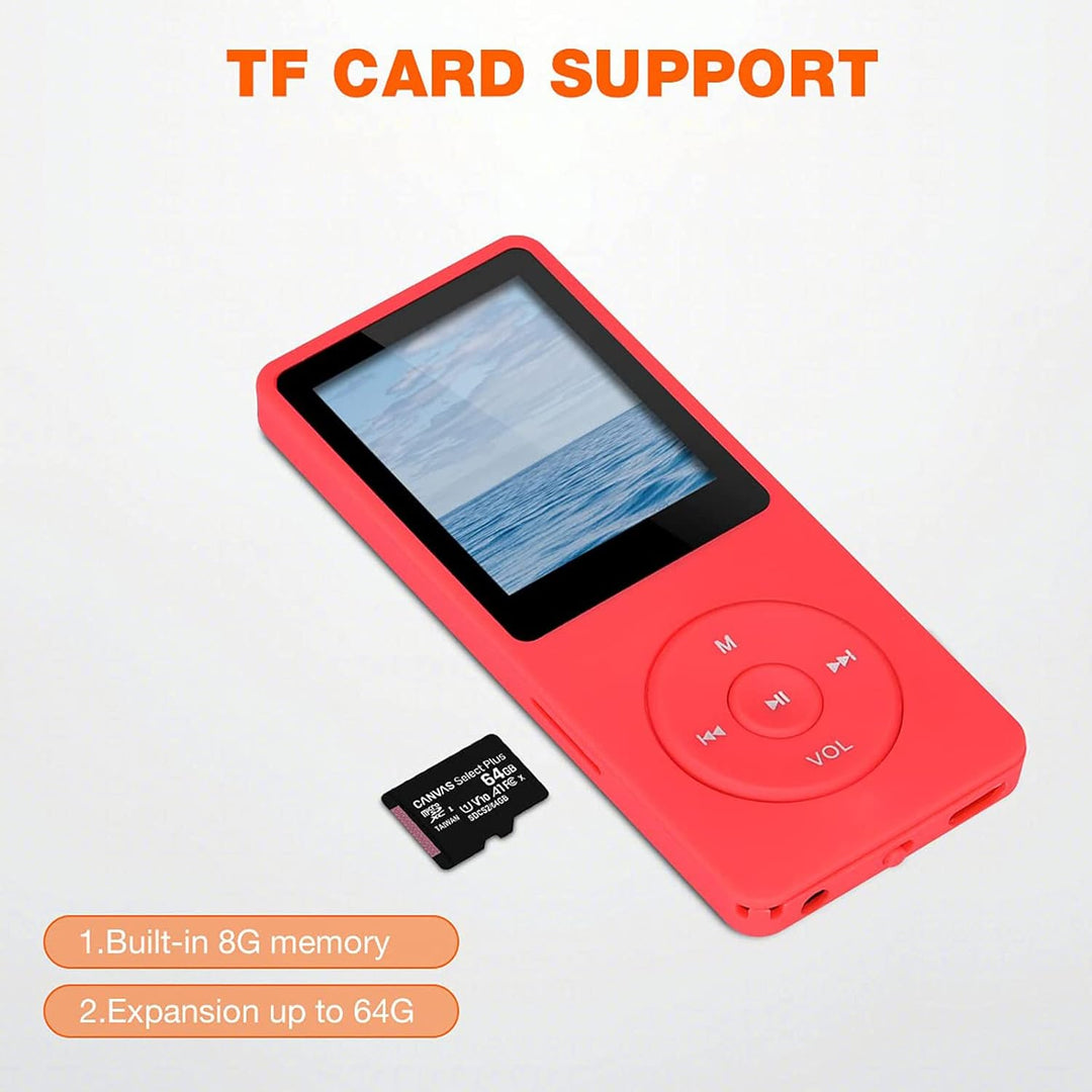 - GROSSE KAPAZITÄT Mit 8 GB integriertem Flash-Speicher kann dieser MP3-Player bis zu 1500 Songs speichern. Der Speicherkartensteckplatz unterstützt 64 GB grosse Micro-SD-Karten.