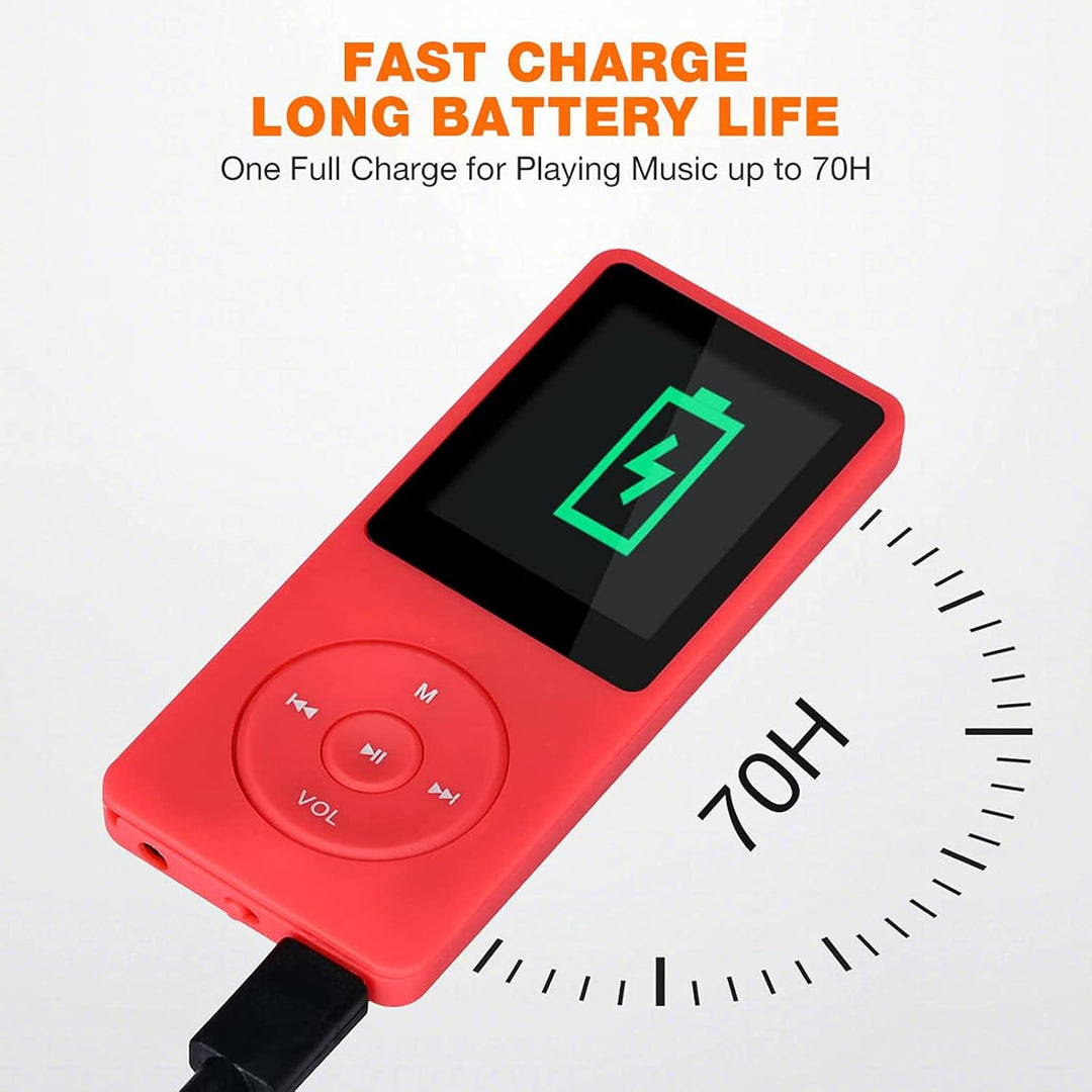 - Lange Spielzeit: Eingebauter Lithium-Akku, wiederaufladbar, nur einmal vollständig aufgeladen (Aufladen in 2-3 Stunden), reicht für 70 Stunden Musik. Unterstützte Audioformate: MP3, WMA, FLAC, WAV, APE usw. Erfüllt alle Ihre Anforderungen