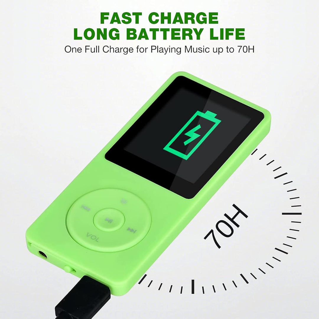 - Lange Wiedergabezeit: Eingebauter Lithium-Akku, wiederaufladbar, nur einmal aufladen (2-3 Stunden laden), reicht für 70 Stunden Musikwiedergabe. Unterstützt Audioformate: MP3, WMA, FLAC, WAV, APE usw. Erfüllt alle Ihre Bedürfnisse!