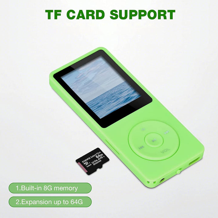 - GROSSE KAPAZITÄT Dieser MP3-Player verfügt über einen integrierten 8 GB-Flash-Speicher und kann problemlos bis zu 1500 Songs speichern. Der Speicherkartensteckplatz unterstützt 64 GB grosse Micro-SD-Karten.