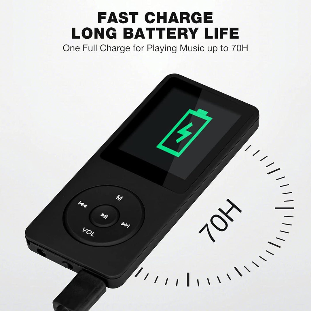 - Lange Spielzeit: Eingebauter Lithium-Akku, wiederaufladbar, nur einmal vollständig aufgeladen (Aufladen in 2-3 Stunden), reicht für 70 Stunden Musik. Unterstützte Audioformate: MP3, WMA, FLAC, WAV, APE usw. Erfüllt alle Ihre Anforderungen