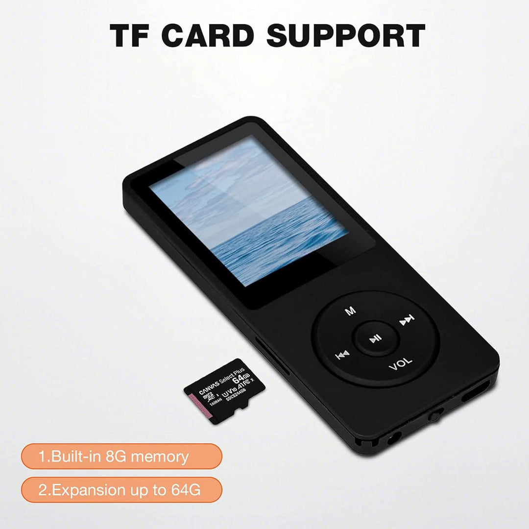 - GROSSE KAPAZITÄT Mit 8 GB integriertem Flash-Speicher kann dieser MP3-Player bis zu 1500 Songs speichern. Der Speicherkartensteckplatz unterstützt 64 GB grosse Micro-SD-Karten.