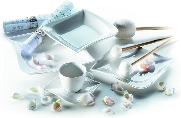 - LA MUSICA – Besonders durch die feinen Verarbeitung besticht diese klassische, weisse Serie mit Beständigkeit, Funktionalität sowie Extravaganz und glänzt sowohl im Alltag als auch bei besonderen Anlässen.