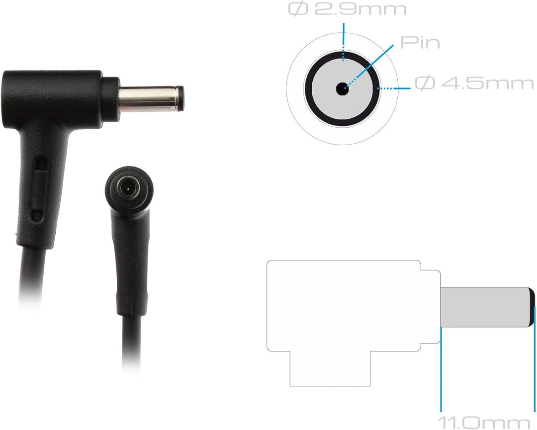 - Steckertyp: rund, Steckerform: 90° abgewinkelt, Aussendurchmesser des Steckers: 4,5 mm, Innendurchmesser des Steckers: 2,9 mm, Länge des Steckers: 11,0 mm, Stift im Stecker: Ja, Länge des Anschlusskabels vom Netzteil zum Notebook: ca. 1,75 m