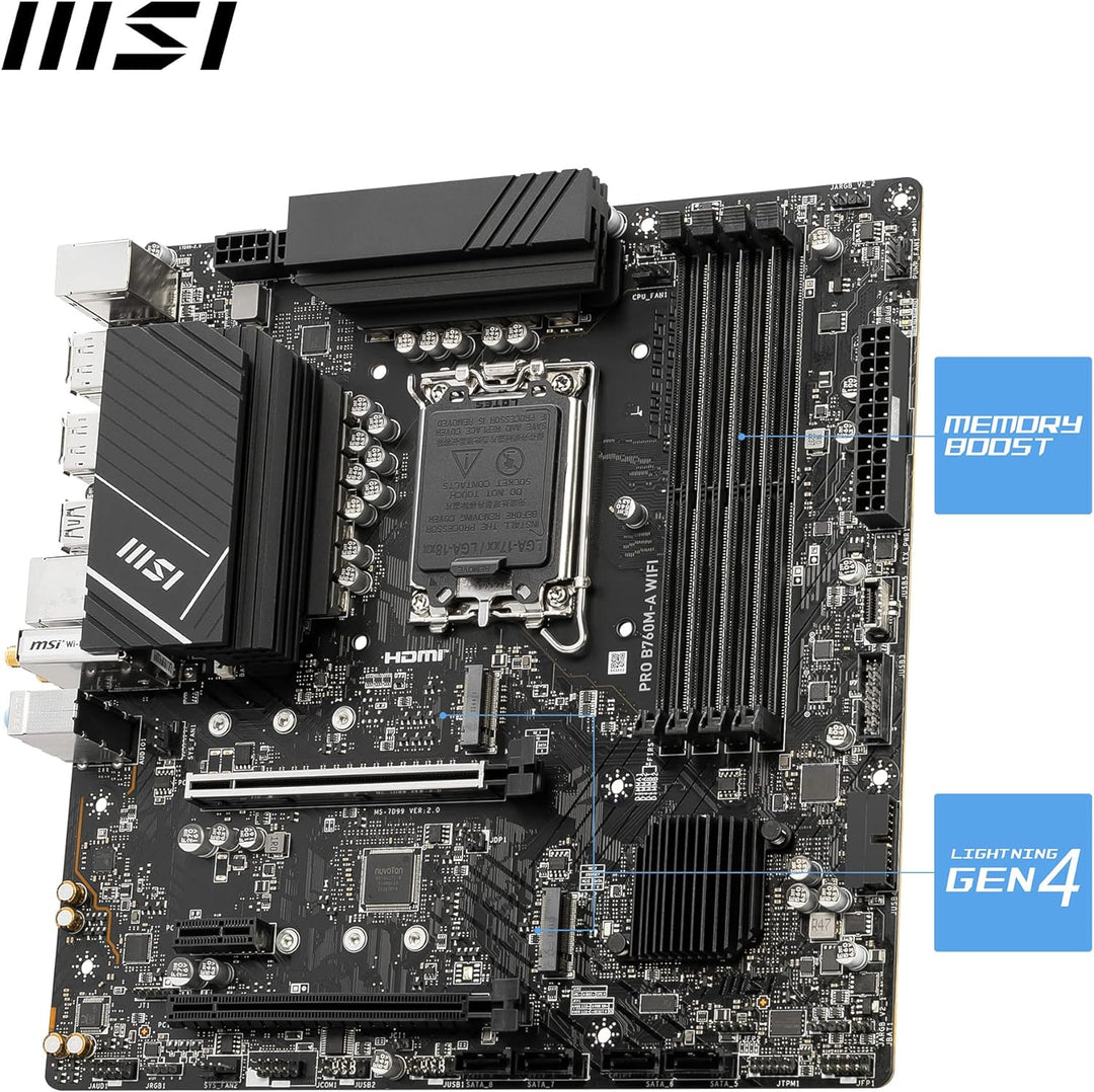MSI PRO B760M-A WiFi Motherboard, Micro-ATX - Für Intel Core Prozessoren der 12. und 13. Generation,