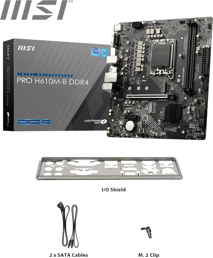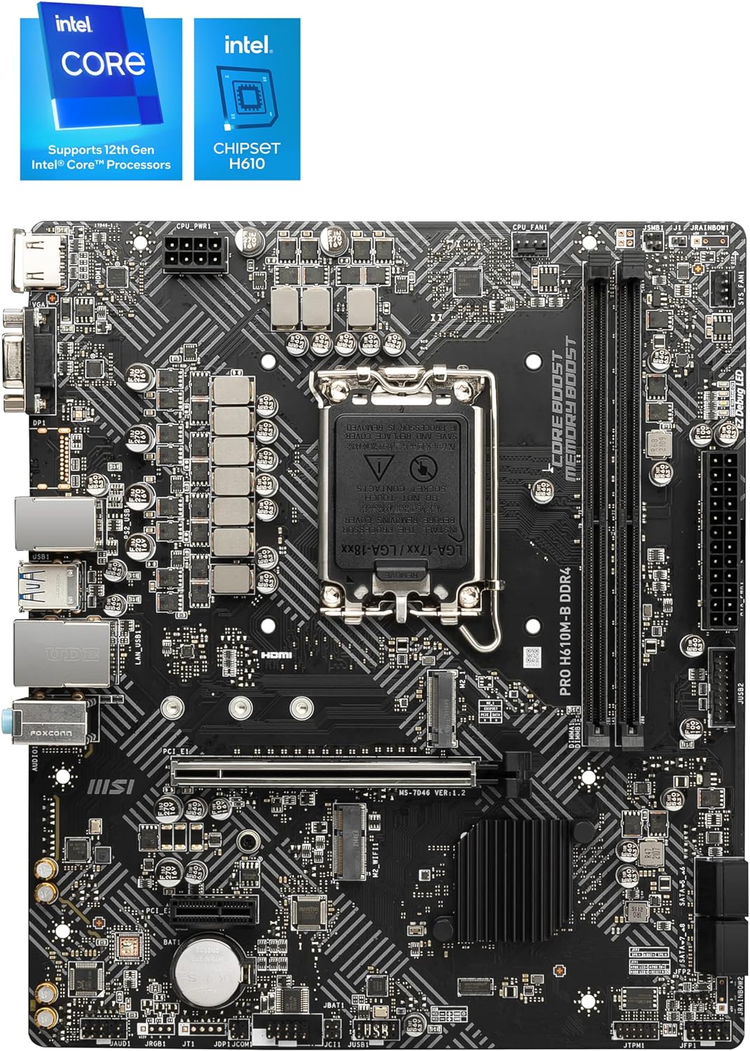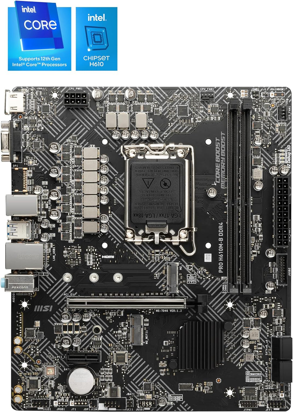 - 12. GENERATION INTEL CORE BEREIT - Das PRO H610M-B DDR4 ist ein kompaktes Micro-ATX-Mainboard mit dem neuesten Intel H610 Chipsatz (LGA 1700, 12th Gen Core ready); das VRM bietet MSI Core Boost Technologie für verbesserte Stabilität und Leistung
