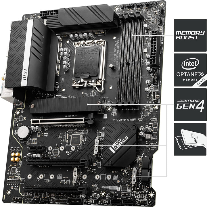 - VRM, 12. GENERATION INTEL CORE BEREIT - Das PRO Z690-A WIFI nutzt eine 14+1+1 Duet-Rail-VRM-Plattform (55A) mit DrMOS für den Intel Z690-Chipsatz (LGA 1700, 12th Gen Core ready); Core-Boost-Architektur unterstützt anspruchsvolle Multi-Core-Prozessoren