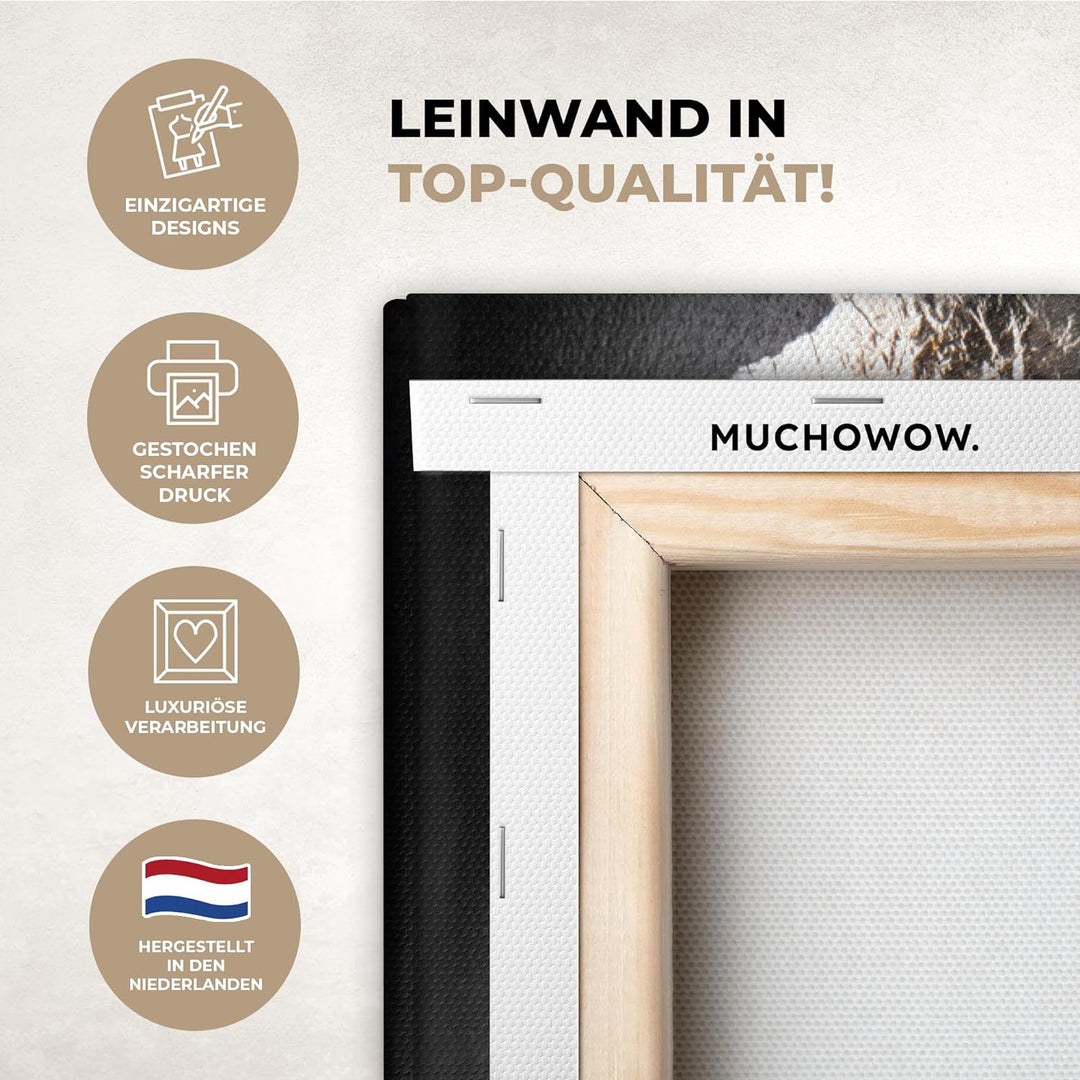 - MATERIAL FOTOWAND: Unser Wandbilder wird auf einem robusten Holzrahmen mit einer Dicke von 2 cm gespannt. Dies gewährleistet nicht nur eine solide Struktur, sondern auch die Langlebigkeit Ihrer Wand Dekoration. Freuen Sie sich auf eine hochwertige