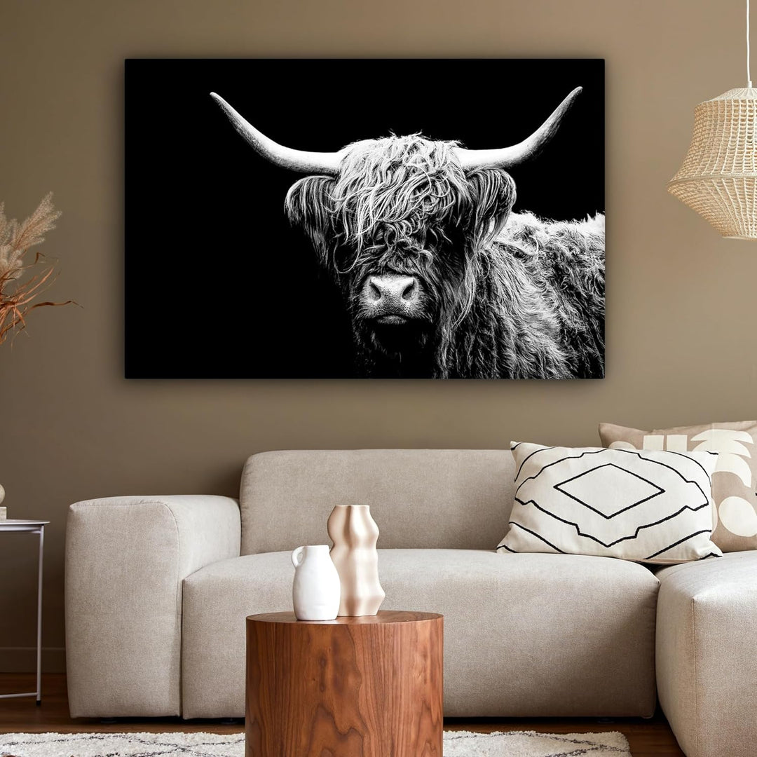 Variante: Schottisches Hochlandrind Schwarz-weiss 120x80 cm