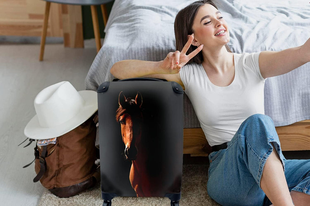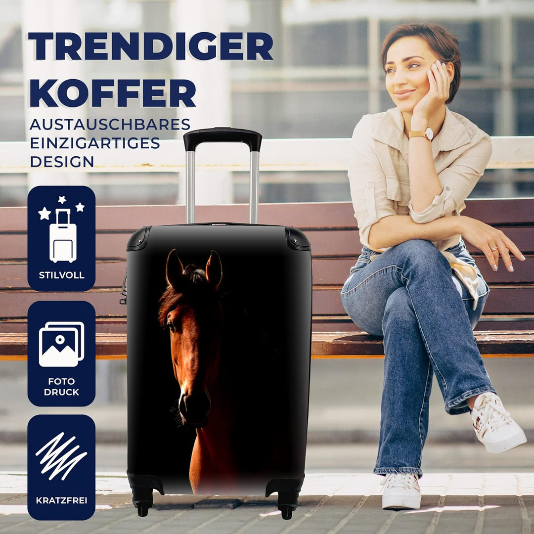 MuchoWow© Koffer Handgepäck Trolley Rollkoffer Kleine Reisekoffer mit 4 Rollen - Pferd - Licht - Por