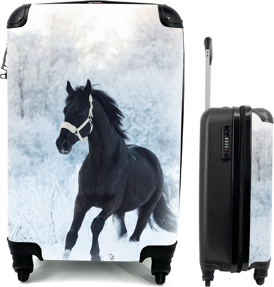MuchoWow© Koffer Handgepäck Trolley Rollkoffer Kleine Reisekoffer mit 4 Rollen - Pferd - Schnee - Wa