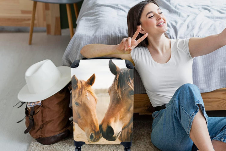 MuchoWow© Koffer Handgepäck Trolley Rollkoffer Kleine Reisekoffer mit 4 Rollen - Pferd - Strand - Ti