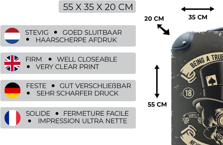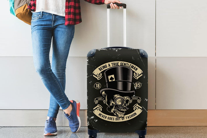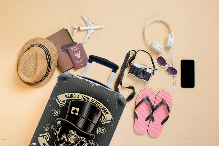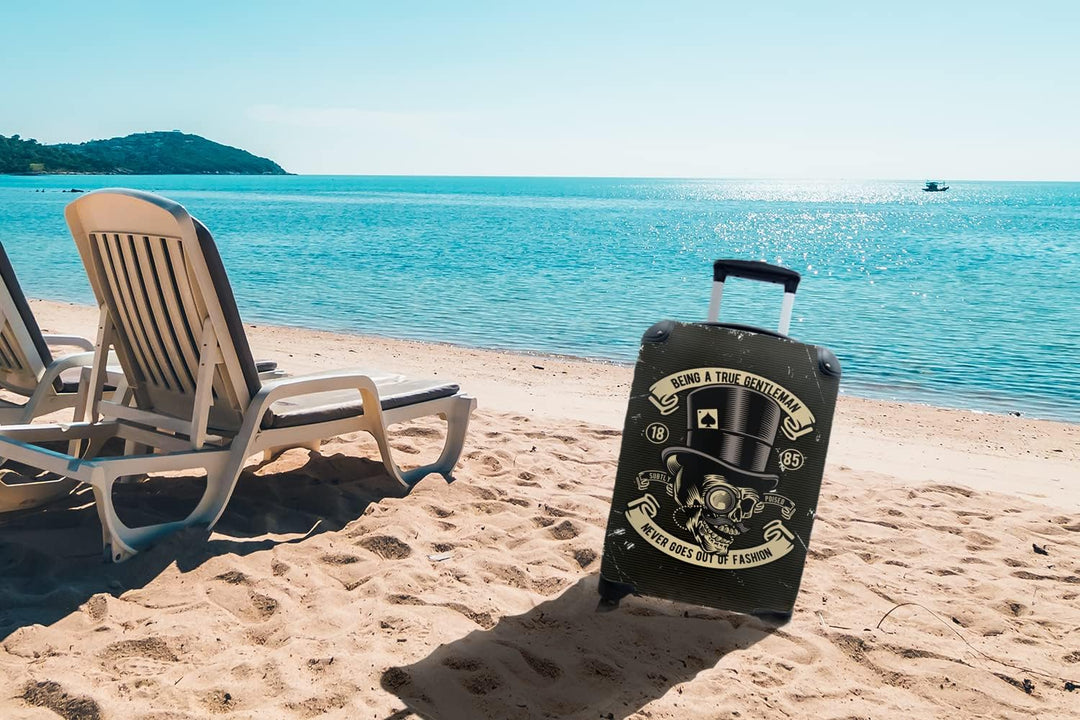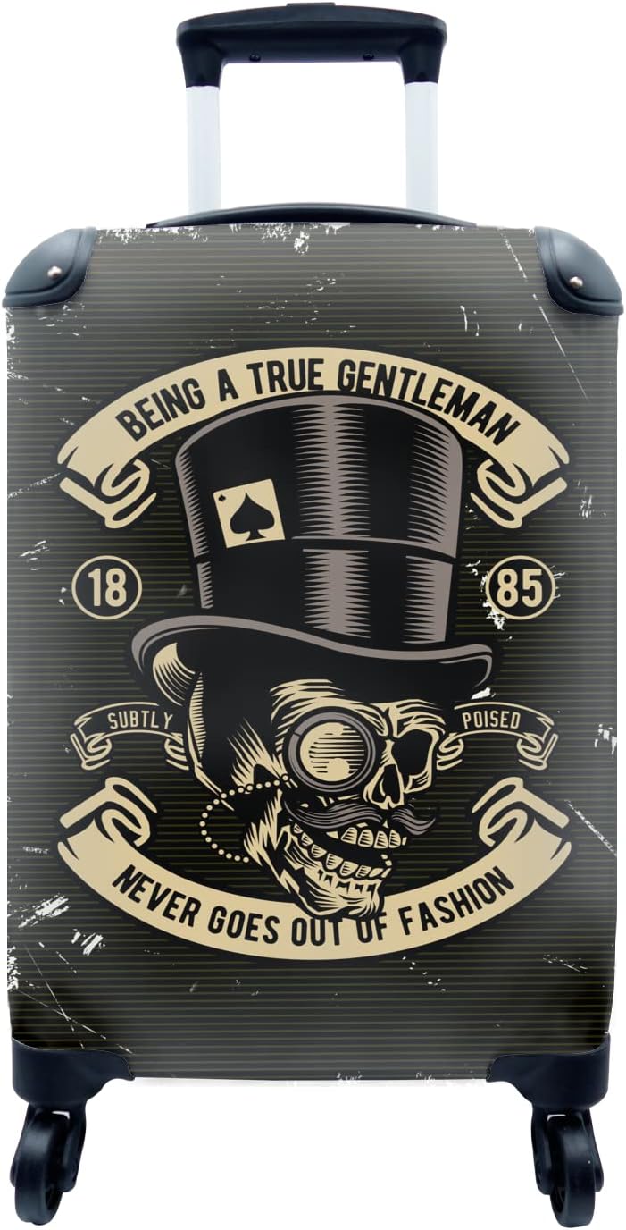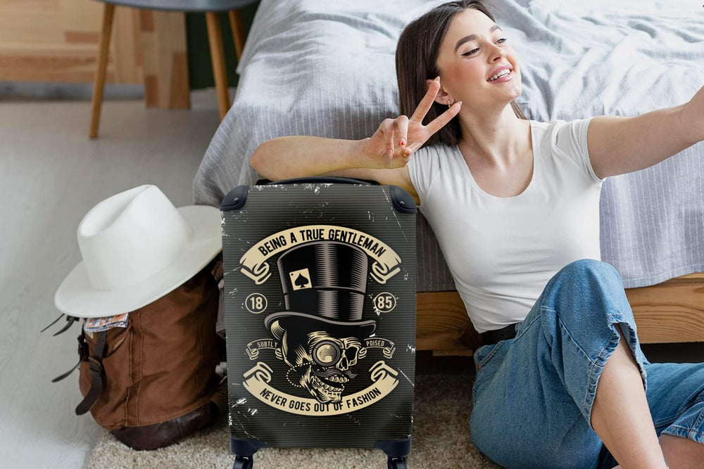 MuchoWow© Koffer Handgepäck Trolley Rollkoffer Kleine Reisekoffer mit 4 Rollen - Totenkopf - Hut - R
