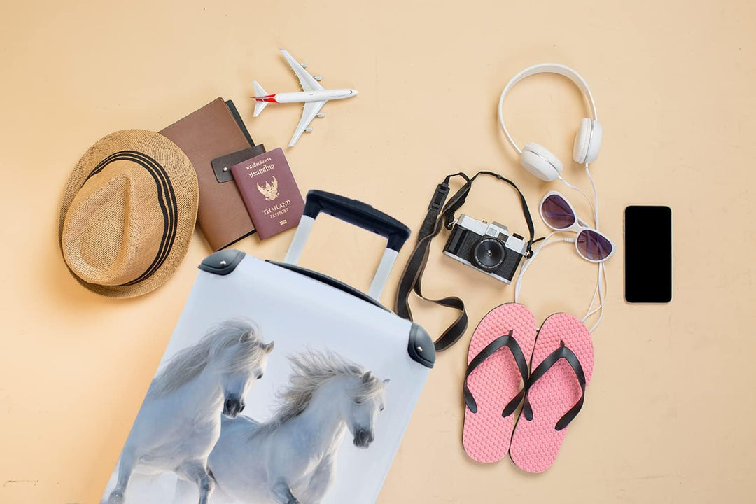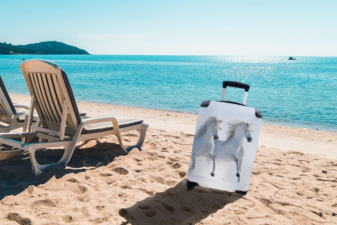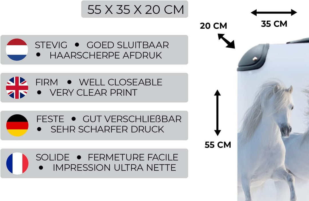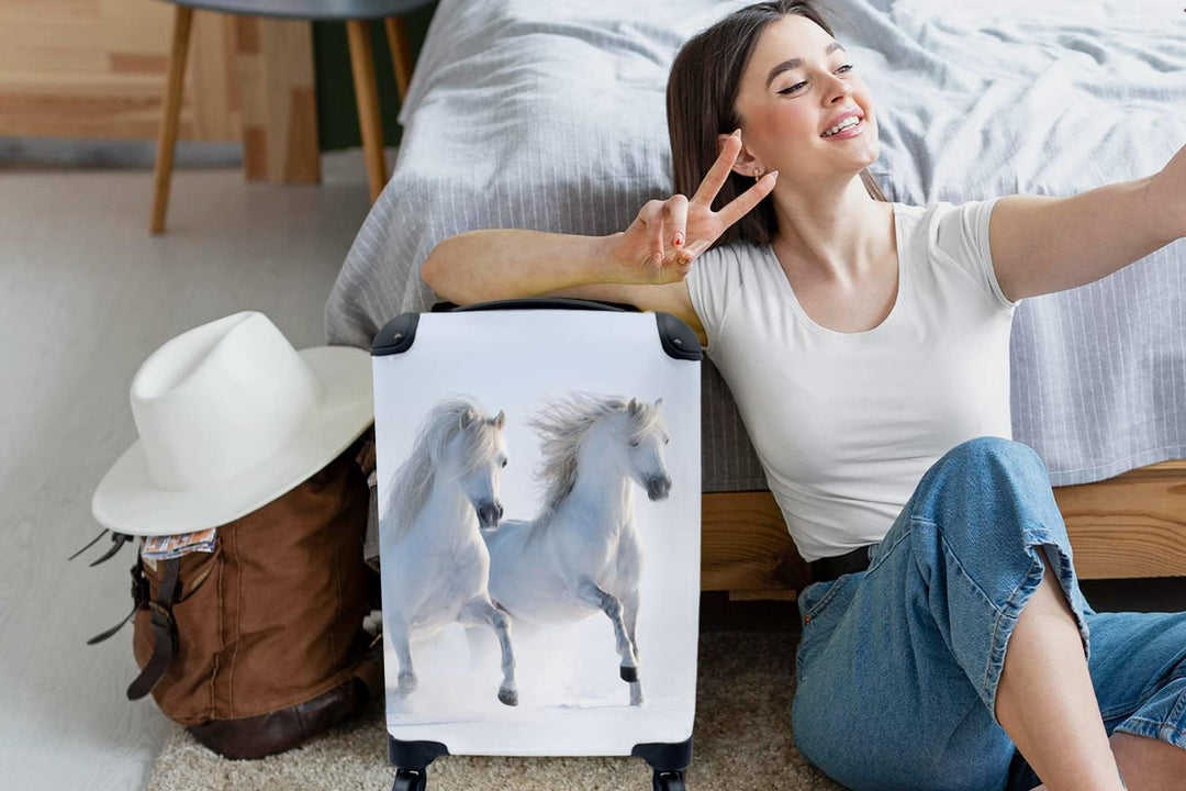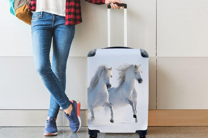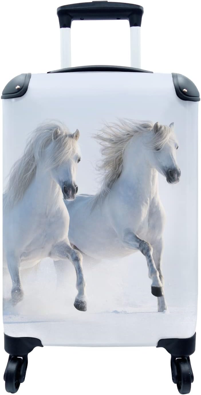 MuchoWow© Koffer Handgepäck Trolley Rollkoffer Kleine Reisekoffer mit 4 Rollen - Winter - Pferde - S