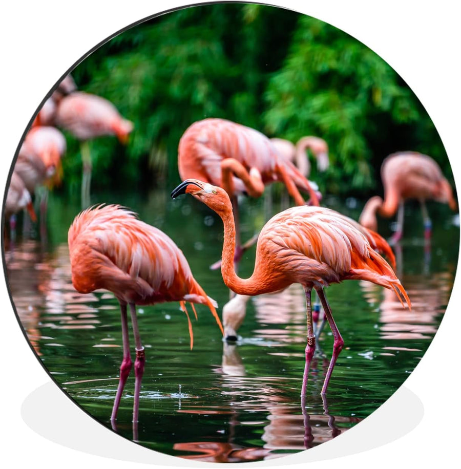 MuchoWow Wandbild Rund Wanddeko Deko Wohnzimmer Bilder 30x30 cm Flamingo - Tropisch - Vogel - Wasser