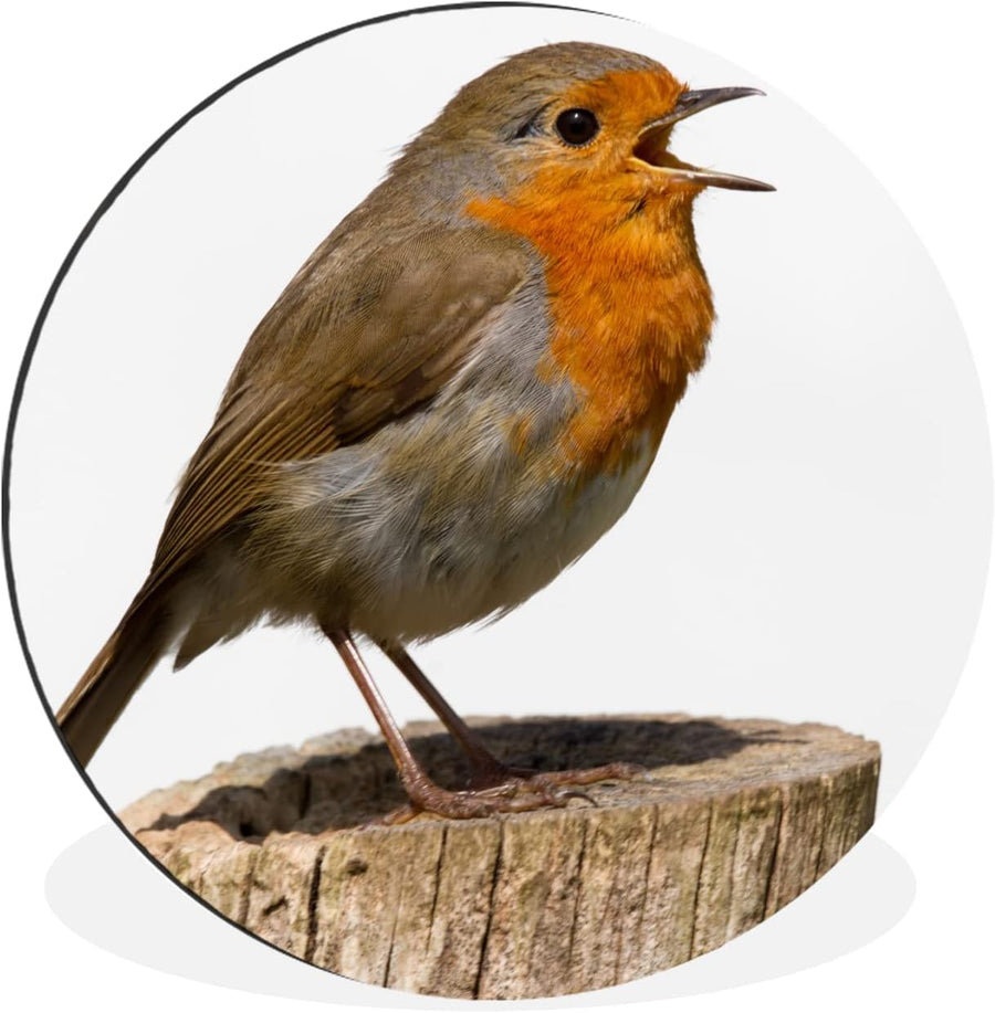 MuchoWow Wandbild Rund Wanddeko Deko Wohnzimmer Bilder 90x90 cm Rotkehlchen - Vogel - Holz, 90x90 cm