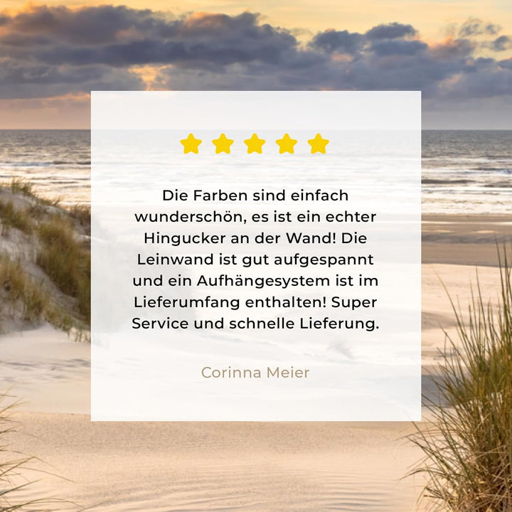- HOCHWERTIGER DRUCK: Erleben Sie mit unseren Wand Deko Strand und Meer Bilder Druck eine beeindruckende Bildqualität. Die hochwertige Druckqualität und die satten Farbtöne werden über den gesamten Rand unserer Leinwände gedruckt.