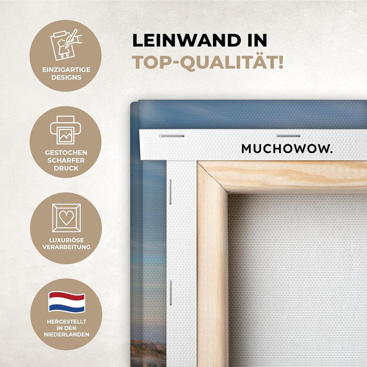 - EIGENSCHAFTEN: Unsere Leinwandbilder müssen nicht montiert werden. Der Leinwanddruck ist auf einem Holzrahmen aufgespannt und kann ohne Bohren aufgehängt werden. Der Holzrahmen hat eine Dicke von 2 cm.