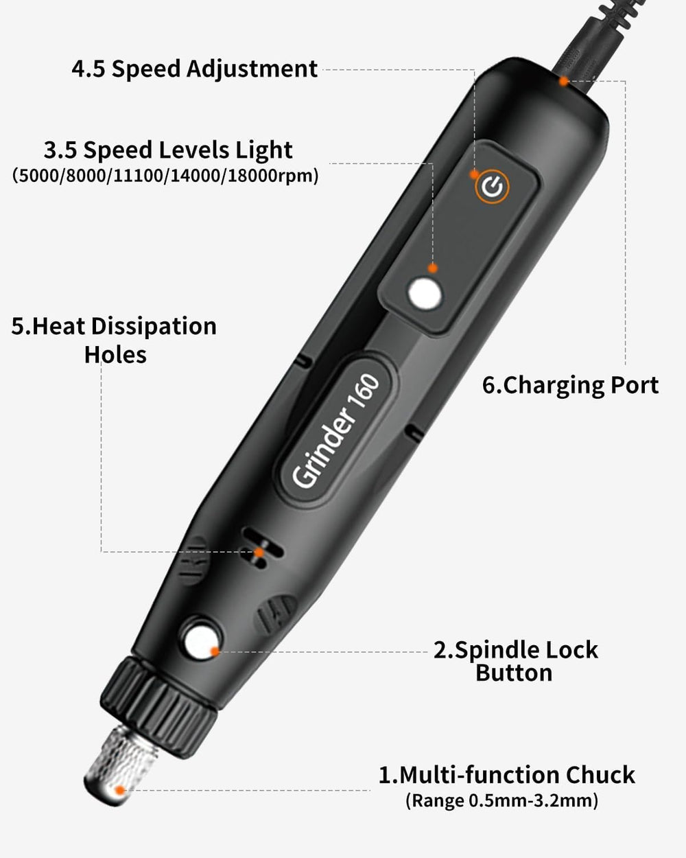 - 【5 Geschwindigkeitsstufen】Das Rotationswerkzeug Zubehörset bietet eine starke und kontinuierliche Leistung, es gibt eine Geschwindigkeitskontrolltaste auf dem Graviergriff, Sie können die Geschwindigkeit zwischen 5000/8000/110000/14000/18000