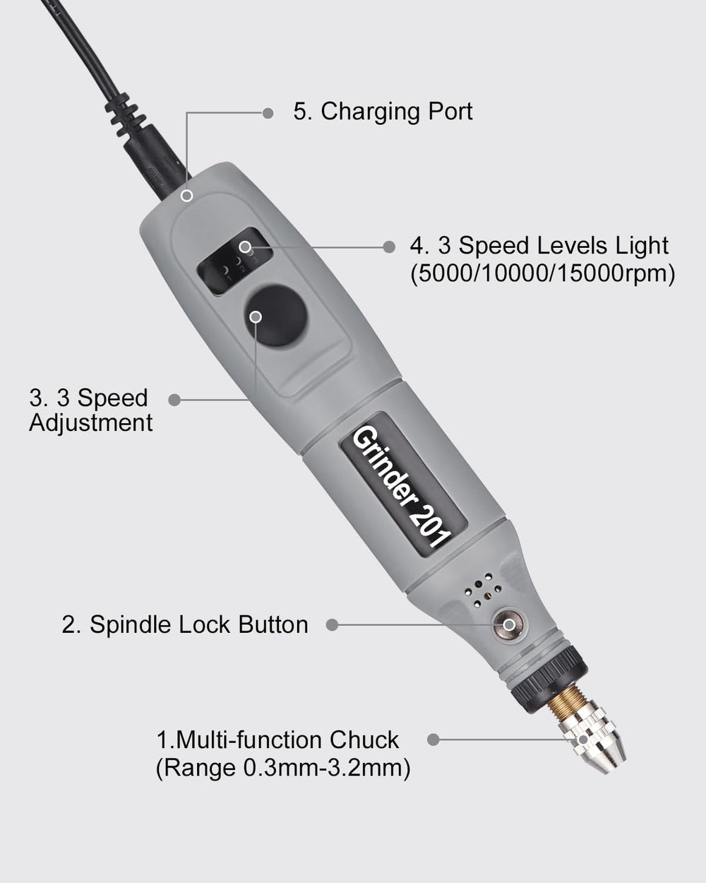 - 【3 Geschwindigkeitsstufen】Das Rotationswerkzeug Zubehörset bietet eine starke und kontinuierliche Leistung, es gibt eine Geschwindigkeitskontrolltaste auf dem Graviergriff, Sie können die Geschwindigkeit zwischen 5000/10000/15000 rmp Minute