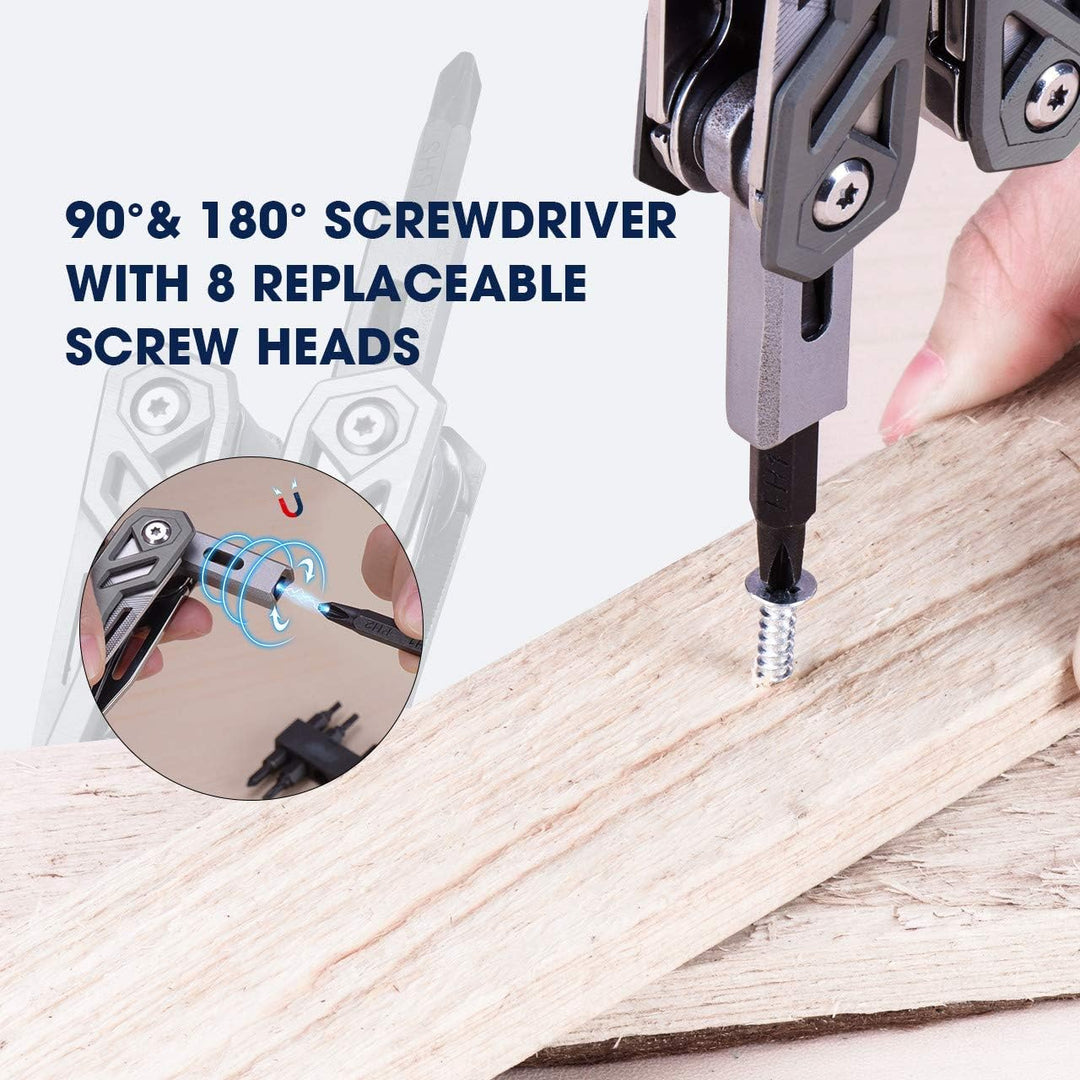 - ▲【Multifunktions Zange mit Spezielle Sicherheitsverriegelung】Multitool Werkzeug, Wir haben eine seitliche Sicherheitsverriegelung eingestellt, um sie mit einem Klick zu steuern. Jedes Werkzeug und Messer wird verriegelt, wenn es vollständig