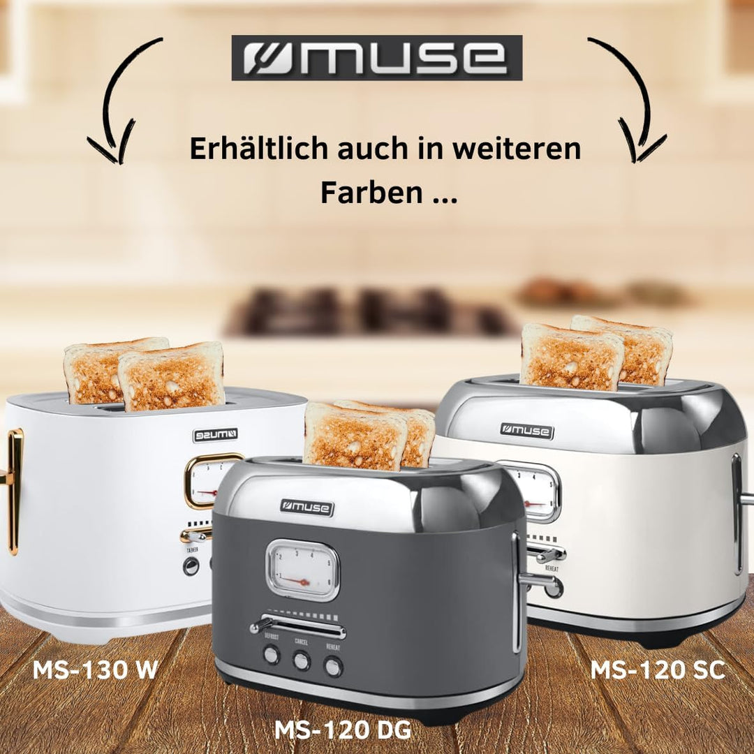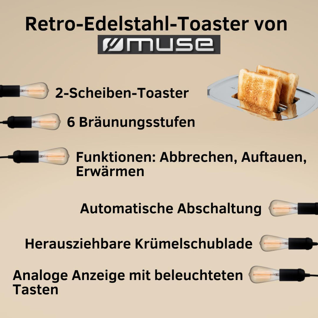 - Lieferumfang: 2Scheiben Toaster (MS-130 BC) und kabelloser Wasserkocher (MS-030 BC) im Vintage Retro-Design, beige / Edelstahl