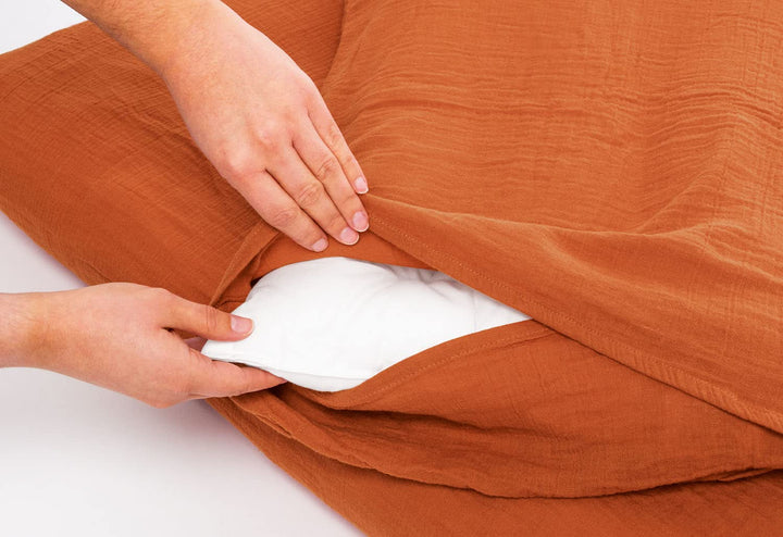 - Babybettwäsche-Set aus Musselin für Kinderbetten, rot, 2-teilig, aus 100% Baumwolle, mit Hotelverschluss, Bettbezug 100 x 135 cm, Kopfkissenbezug 60 x 40 cm, bis 60 Grad waschbar, schonende Trocknung