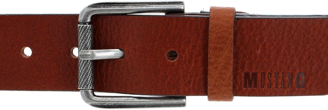PRODUKTBESCHREIBUNGEN MUSTANG Gürtel - schlicht und schick Daten Gürtel: o Grösse: Weite ca. 80 cm - ca. 92,5 cm (W85) o Masse: Breite ca. 4,0 cm, Stärke 0,3 cm o Gewicht: ca. 175 g o Farbe: Cognac (Braun) o Material: 100% Leder o Lieferumfang: MUSTANG Gürtel mit Etikett Ausstattung Gürtel: o Gürtel wird mit Dornschliesse geschlossen o 6 gestochene Löcher o Das MUSTANG Logo ist gut sichtbar eingearbeitet MUSTANG Adjustable Men´s Belt W85 - Ein Gürtel für jeden Tag Sie suchen nach einem schlichten Gürtel, welcher für jeden Tag geeignet ist und ihrem Outfit einen tollen Touch verleiht? Dann ist dieser MUSTANG Gürtel genau das richtige Accessoire für Sie. Denn dieser schicke Gürtel ist schlicht und einfach gehalten. Doch durch seine genarbte Struktur ist er doch besonders und einzigartig. Dank dem verwendeten Material ist dieser robust und langlebig bei guter Pflege. Zudem hat dieser MUSTANG Adjustable Men´s Belt in der Weite 85 einen Logo-Print auf dem Gürtelende, welches ein kleines Highlight ist.