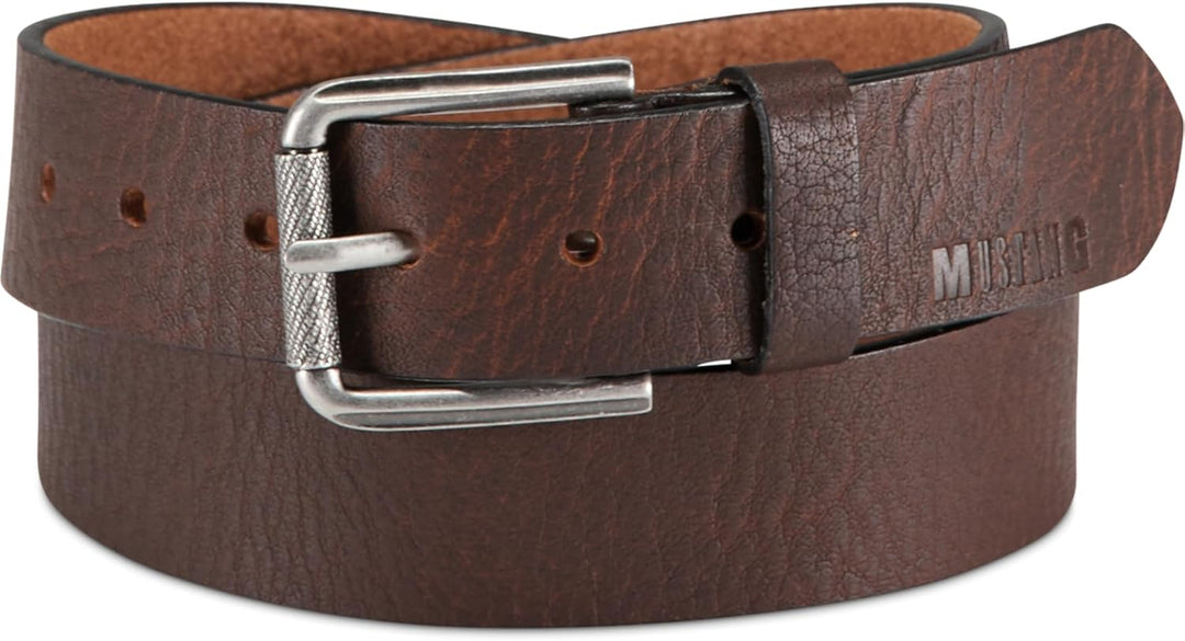 PRODUKTBESCHREIBUNGEN MUSTANG Gürtel - schlicht und schick Daten Gürtel: o Grösse: Weite ca. 85 cm - ca. 97,5 cm (W90) o Masse: Breite ca. 4,0 cm, Stärke 0,3 cm o Gewicht: ca. 175 g o Farbe: Dark Brown (Braun) o Material: 100% Leder o Lieferumfang: MUSTANG Gürtel mit Etikett Ausstattung Gürtel: o Gürtel wird mit Dornschliesse geschlossen o 6 gestochene Löcher o Das MUSTANG Logo ist gut sichtbar eingearbeitet MUSTANG Adjustable Men´s Belt W90 - Ein Gürtel für jeden Tag Sie suchen nach einem schlichten Gürtel, welcher für jeden Tag geeignet ist und ihrem Outfit einen tollen Touch verleiht? Dann ist dieser MUSTANG Gürtel genau das richtige Accessoire für Sie. Denn dieser schicke Gürtel ist schlicht und einfach gehalten. Doch durch seine genarbte Struktur ist er doch besonders und einzigartig. Dank dem verwendeten Material ist dieser robust und langlebig bei guter Pflege. Zudem hat dieser MUSTANG Adjustable Men´s Belt in der Weite 90 einen Logo-Print auf dem Gürtelende, welches ein kleines Highlight ist.
