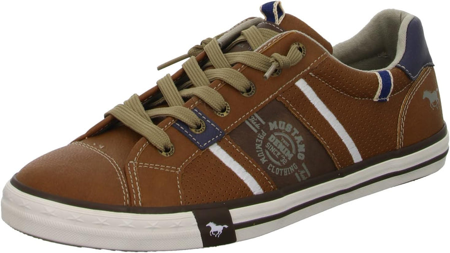 PRODUKTBESCHREIBUNGEN Angesagter Herren-Sneaker von Mustang! Das perforierte Lederimitat mit Zierstreifen und coolem Logoprint an der Seite ist der Hingucker dieses Modells. Die Textil-Innenausstattung und die flexible, sportive Laufsohle sorgen für ein angenehmes Tragegefühl.