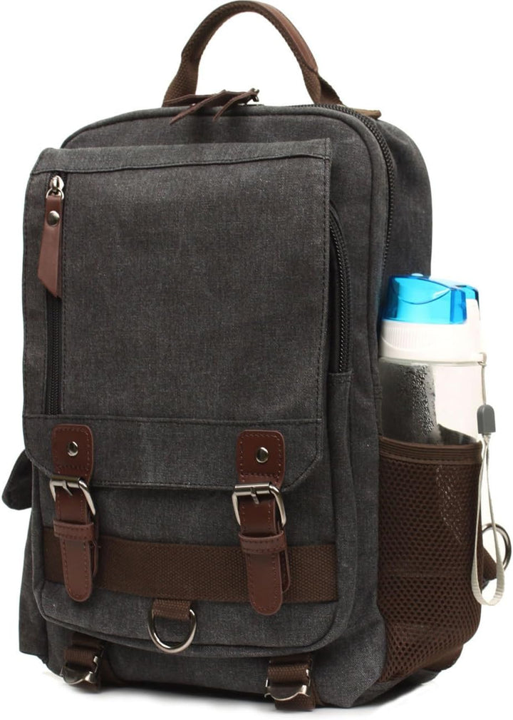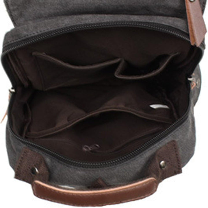 - 3.Der Canvas Rucksack ist klassisch und multifunktional mit mehreren Taschen. 1 Reissverschlusstasche in der Frontklappe; 1 Reissverschlusstasche und 1 offene Tasche ist unter der Klappe; 2 Seitentaschen. Das Hauptfach hat 2 Reissverschlüsse: 1 innere