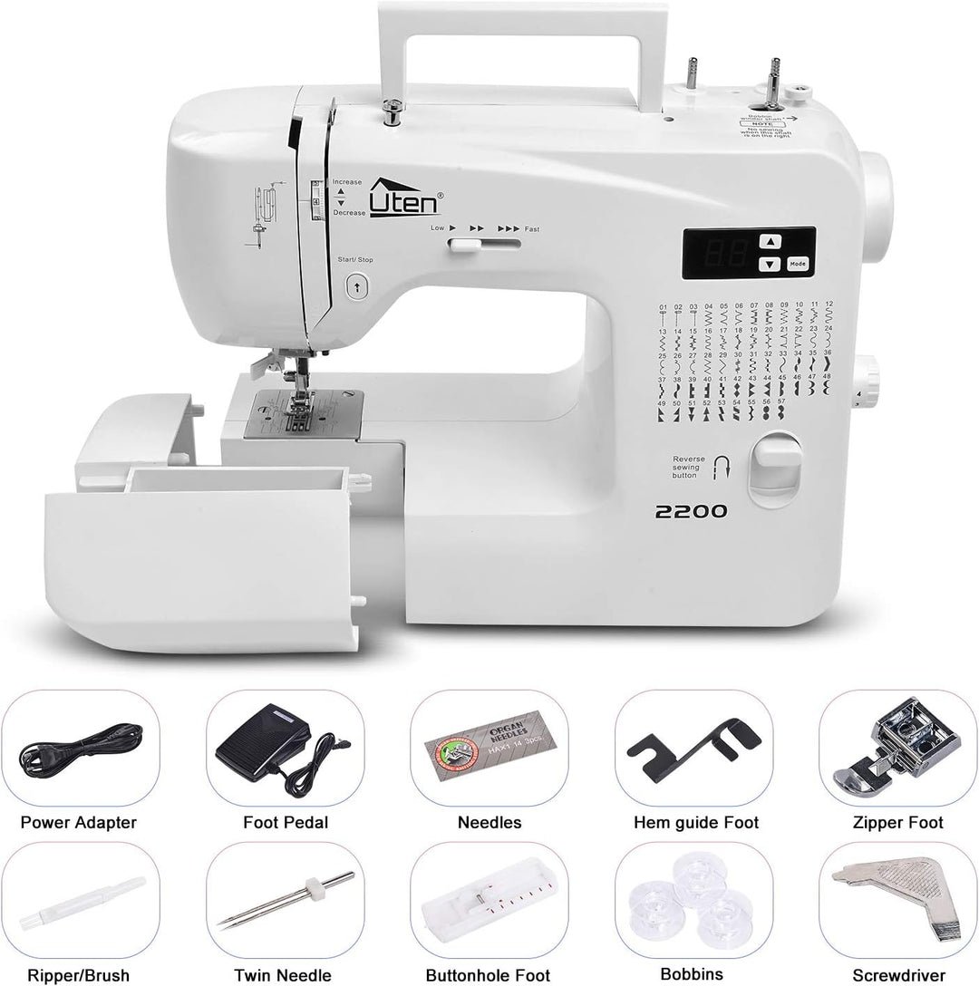 - Nähmaschine Elektrisch: Uten 2200 Computer Nähmaschine besteht aus robuster Aussengehäuse und starke Halterung. Das integriertes LED-Licht leuchtet den grosser Nähbereich perfekt aus. MIt LCD Display kann Sie einfach ausgewählt Stiche und Sichbreite