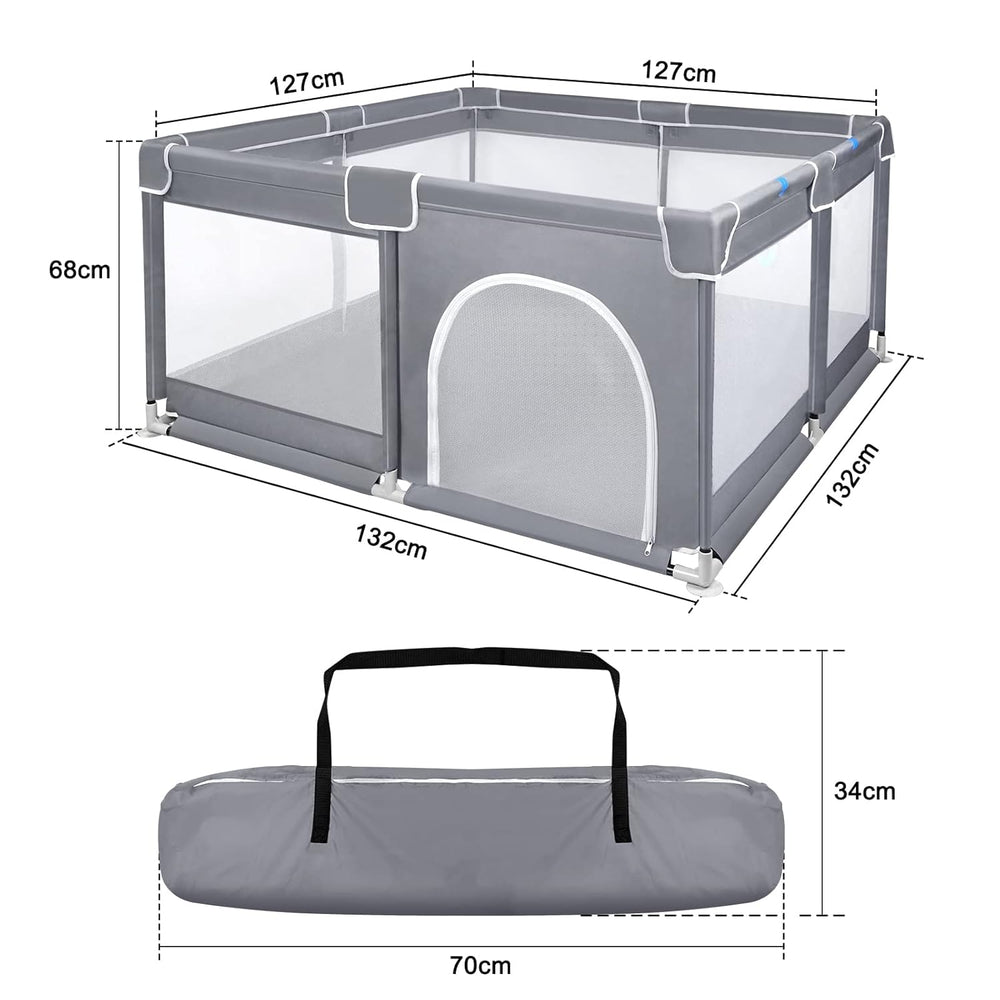 • 【Baby Laufstall】Es hat ein Geräumiger Platz. Nach korrekter Installation gemäss der Anleitung beträgt die Gesamtgrösse des Artikels ca. 127 x 127 x 68 cm [L x B x H]. Es gibt genug Platz für Ihr Baby, um so viel zu spielen, wie Sie möchten, und auch Eltern können das Baby betreten und begleiten.