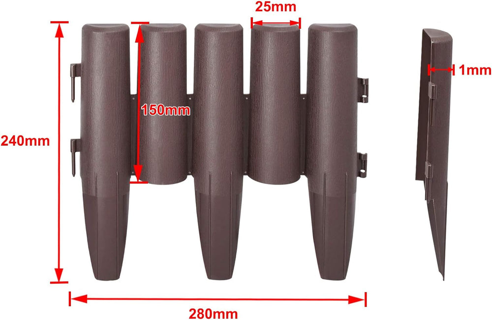 - Holzimitatstruktur Rasenkante - Material: Polypropylen (PP), Zaungrösse: (Breite x Höhe) 280 mm x 240 mm (mit Spleissschnalle), Farbe: Braun, Oberfläche: Holzimitatstruktur
