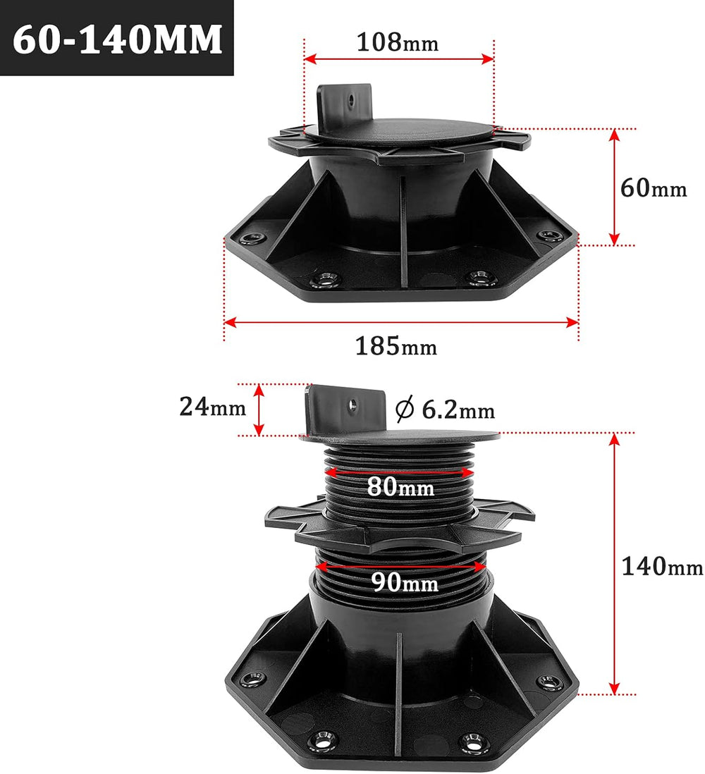 - Stufenlose Höhenverstellung möglich - Jedes Stelzlager kann per Schraubring auf die benötigte Höhe eingestellt werden. Sie können die Höhe jedes stellfuss entsprechend der Oberfläche einstellen.