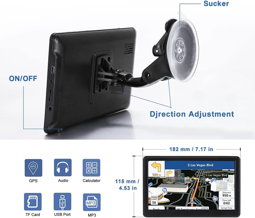 - 【7-Zoll-Grossbildschirm】 Die Navigation verwendet einen 7-Zoll-Touchscreen, der grösser als der Bildschirm eines Smartphones und einfacher zu lesen ist. Dank Wince-Betriebssystem, 8 GB + 256 MB, läuft das Auto-Navigationsgerät flüssig und ist über viele Jahre einfach zu bedienen. Der Saugnapf hält das GPS sicher an der Windschutzscheibe. Navigationsgeräte können auch mit den mitgelieferten Halterungen und Saugnäpfen auf das Armaturenbrett geklebt werden.