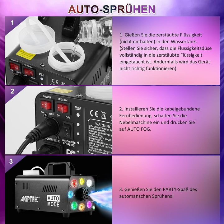 Nebelmaschine, AGPtEK Nebel Maschine mit kabelloser Fernbedienung UND aktiviertes LED Licht, 500 WAT