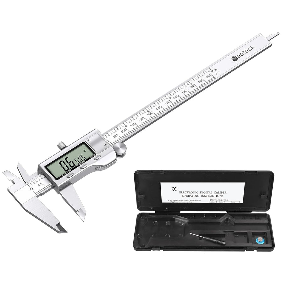 - Edelstahl: Gehärteter Edelstahlschaft mit Tiefenmessklinge, präzise Innen- und Aussenmessbacken, präzises Läppfinish, elektronischer digitaler Messschieber