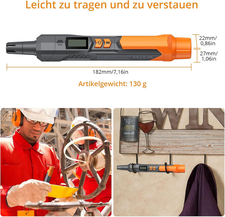 - 【Kompaktes Design】 Taschenformat mit einem Taschenclip, mit dem Sie es in Ihrer Hemdtasche tragen können. Durch die mitgelieferte Aufbewahrungstasche lässt sich der Erdgasdetektor leicht verstauen. Es ist ein hervorragendes Werkzeug für