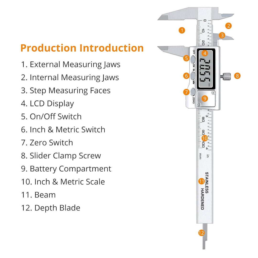 - 【Bonus】 Wenn Sie den Messschieber kaufen, erhalten Sie eine zusätzliche LR44-Batterie und einen passgenauen Aufbewahrungskoffer für den Messschieber für ein besseres Preis-Leistungs-Verhältnis