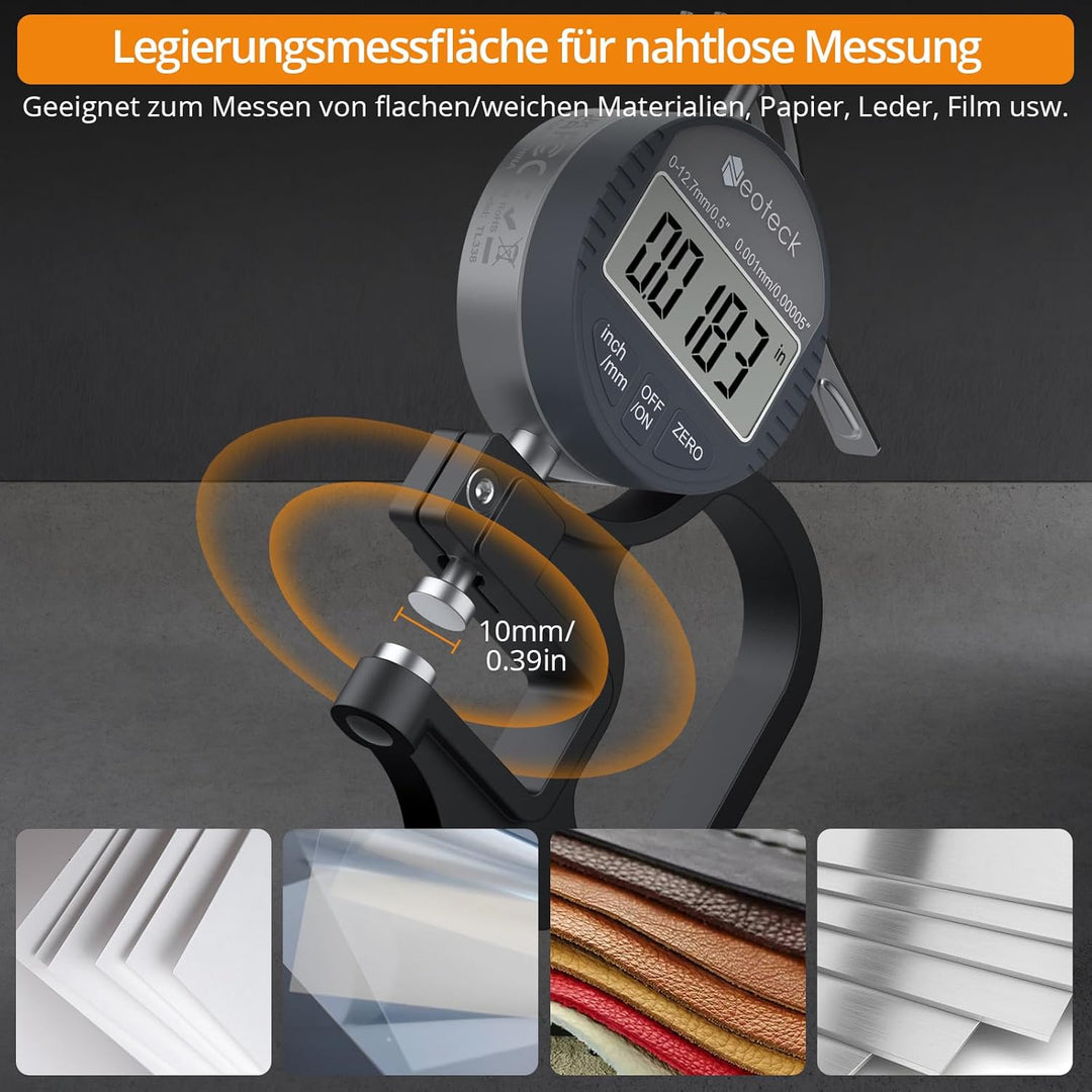 - 【Digitale Messuhr aus Aluminiumlegierung】 Grosses 3-stelliges LCD-Display zum genauen Messen von Leder, Papier, Folie, Schwamm und Draht