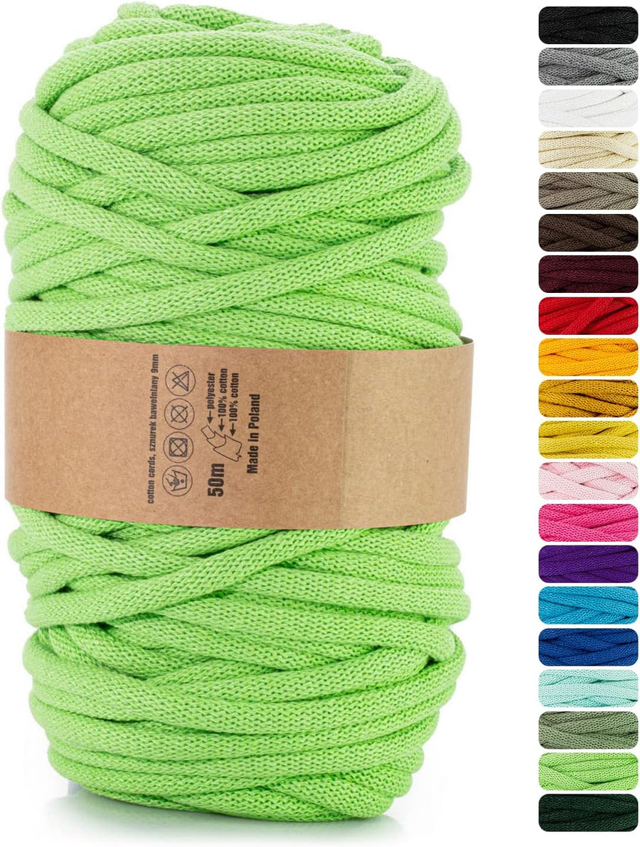 - TECHNISCHE DATEN – 1 Knäuel Baumwolle Garn, der Durchmesser 9mm, Länge die 50m; Kern aus Polyester. Die Farbe des angebotenen Produkts kann von der Farbdarstellung Ihres Monitors abweichen.