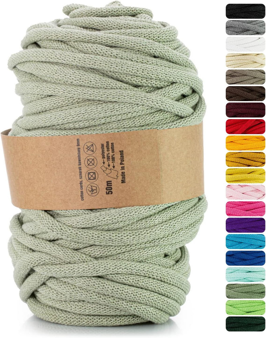 • TECHNISCHE DATEN – 1 Knäuel Baumwolle Garn, der Durchmesser 9mm, Länge die 50m; Kern aus Polyester. Die Farbe des angebotenen Produkts kann von der Farbdarstellung Ihres Monitors abweichen.