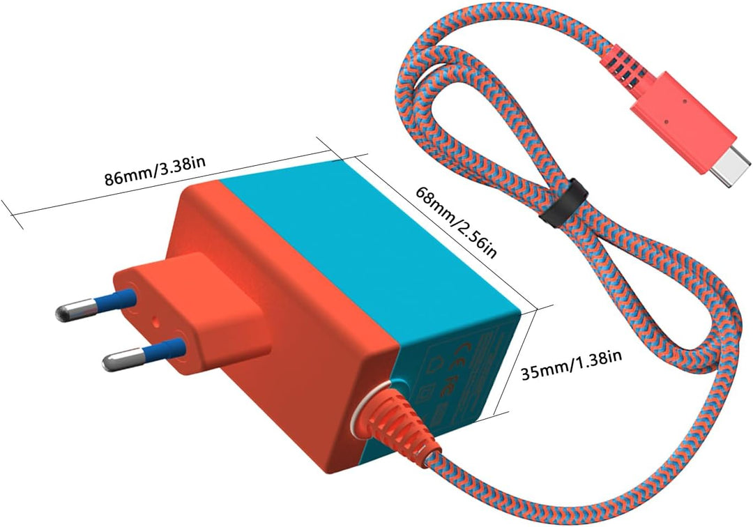 • 【Schnelles Laden】Das Ladegerät für Switch wird mit einem 1,5 m langen Ladekabel geliefert, das das Aufladen während der Wiedergabe unterstützt. Eingang: AC 110 – 220 V, 1 A; Ausgang: DC 5 V/1,5 A, 15 V/2,6 A, vollständig aufgeladen in 2,5