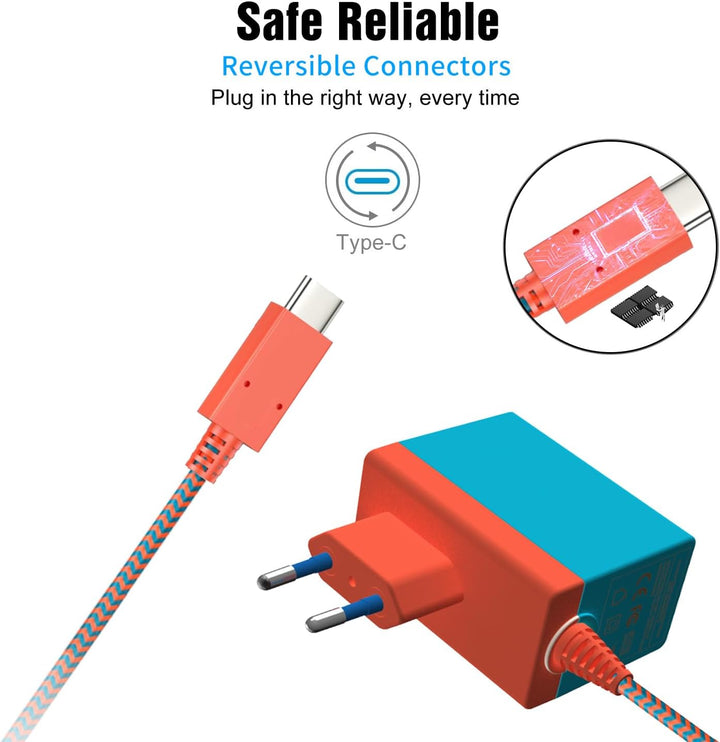 Netzteil für Switch,Ladegerät für Nintendo Switch,Unterstützt TV-Modus/Handheld-Modus,15V/2.6A Schne