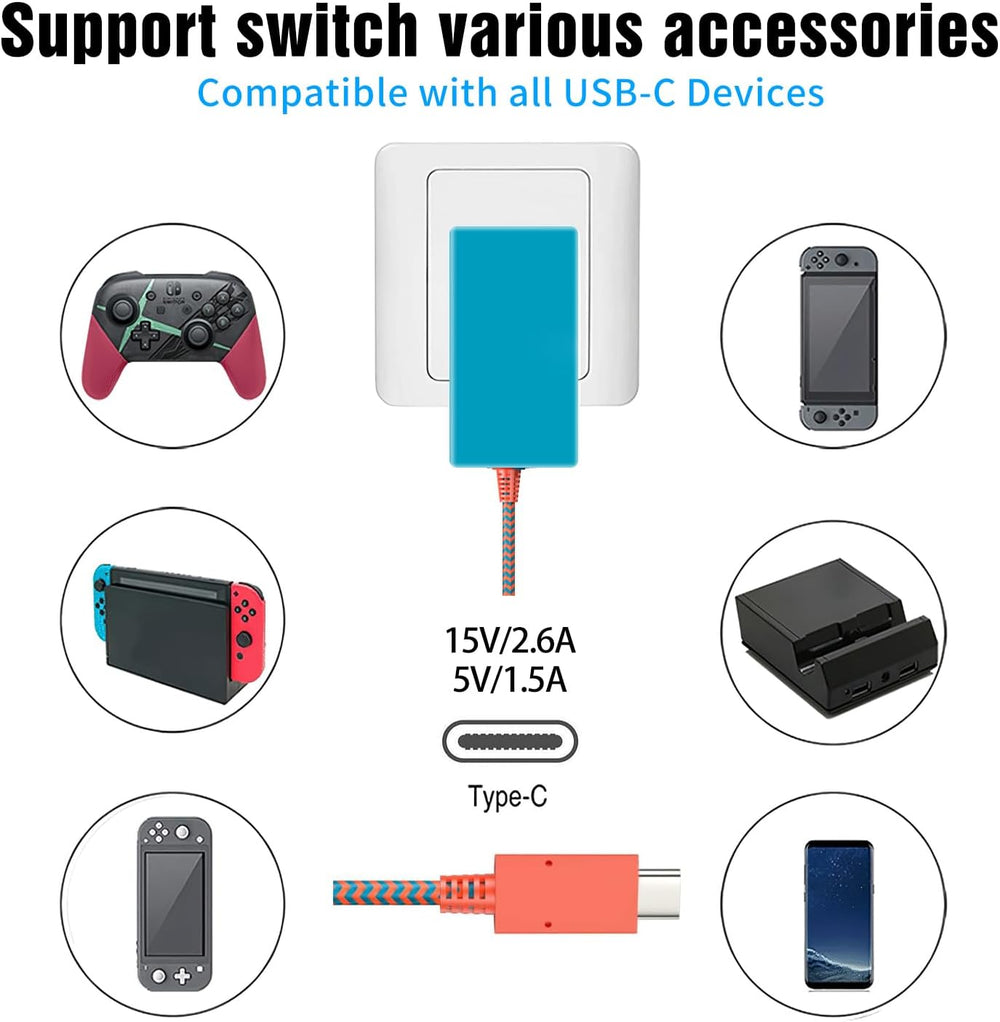 • 【Adapter für Nintendo Switch】- Kompatibel mit Switch und Switch Lite. Das Netzteil, das 5,0V-3A / 15V-2,6A ausgibt, ist ein Typ-C-Ladeanschluss, der alle Typ-C-Geräte unterstützt, wie zum Beispiel: Nintendo Switch, Switch Lite, Switch Pro